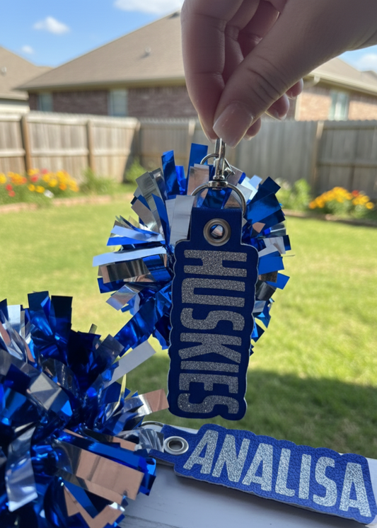 Custom Faux Leather Keychain with Matching 4 inch Cheer Pom Pom (40 color combos available!) – The Perfect Personalized Holiday/Christmas Gift!